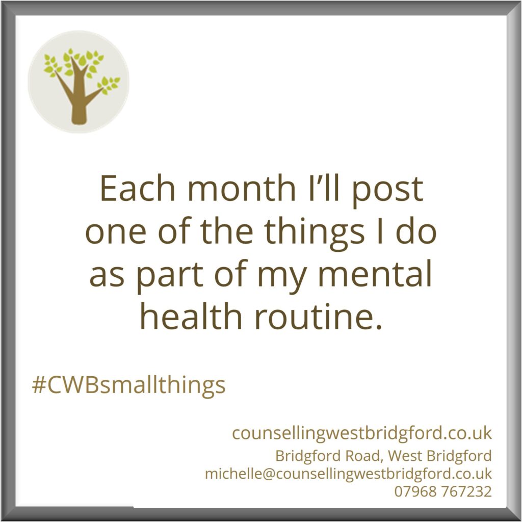 Each month I’ll be posting one of my small things that contribute to maintaining out mental health.